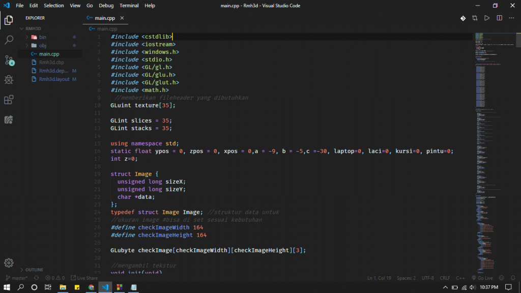 Pada kesempatan kali ini saya akan membagikan project semester 5. Yaitu projek yang ditugaskan membuat objek 3d (3Dimensi) berserta animasinya menggunakan OPEN GL. Kemudian project yang saya buat kemarin adalah membuat sebuah ruangan yang didalamnya terdapat berbagai furnitur yang bisa digerakkan.